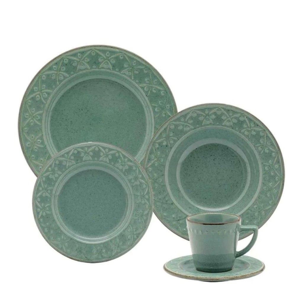 Deixe sua mesa mais vibrante e sofisticada! Adquira já o Aparelho de Jantar e Chá 30 Peças Flora Mendi Malaquita e transforme seus momentos à mesa em pura inspiração.